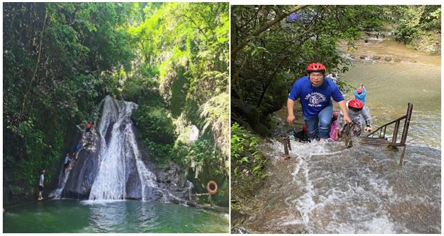 第二天上午,我们先去游玩古东森林瀑布,它是由地下涌泉形成的因钙化可以长高的多级串联瀑布,也是一个可以攀爬的瀑布。瀑布从高崖飞落而下,形成一道水帘,仿佛一张素洁的锦缎,等待心灵手巧的姑娘去编织美丽的图案。大家纷纷换上草鞋和头盔,迫不及待地与瀑布亲密接触,与水花亲热拥抱。泉水清澈见底,空气清新,俨然一个天然的氧吧,让人神清气爽。