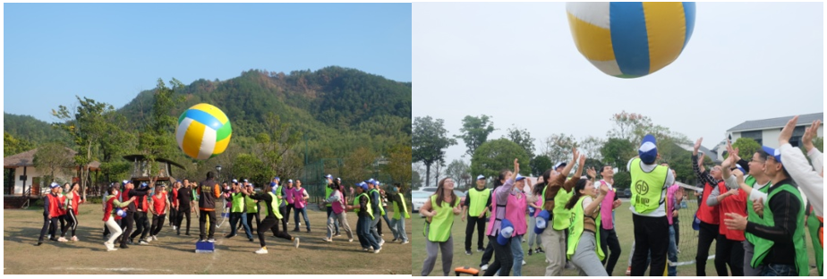 活动项目三:『超级排球』——组团PK,团队协作。这是一个体力与脑力活动相结合、个人挑战和团队合作相结合的过程。培养团队决策与统筹意识,大团队意识以及团队间的相互合作,在执行过程中对目标偏离时,怎样快速沟通重新调整计划。