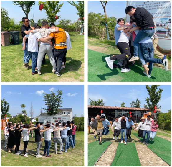 首先开始的是热身活动,生产部经理让伙们都围成一个大圆圈,手拉手,相互为对方按摩捏捏肩,为接下来的活动环节先热热身。接下来大家分成三组进入游戏环节:1.化零为整;打破隔阂,拉近距离;2.资源整合;团队协作,力争胜利;3.最终冲刺;八仙过海,各显神通,大家通过有效沟通,高效地完成了目标游戏任务。
