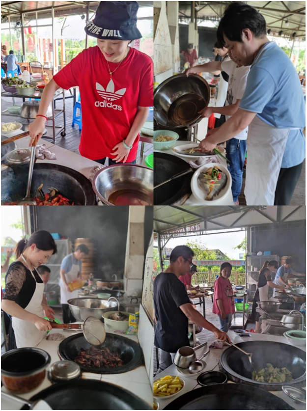 随着太阳的西下,团建活动也接近了尾声,但活动高潮仍旧层出不穷。根据事先计划,当晚的所有餐食都是小伙伴们从采买、自己动手洗、配菜、烧菜配合完成的,大家大展身手:厨艺好的就做菜、厨艺不好的就打下手、刷龙虾、烧锅等,总之大家都忙的不亦乐乎,吃得津津有味。