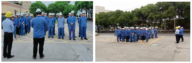 下午14时30分,参加演练人员集合,由总指挥进行演练前的动员大会。动员大会根据演练方案落实详细的演练步骤,对逃离路线及各演练组职责做了明确的规定。会议结束后各演练组按照分工,有条不紊地回到自己的岗位等待演练正式开始。